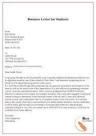 Five sample business letter for students on 1. While writing a formal letter there are some standard inputs which must be present in them. Student and recent graduate cover letter samples.