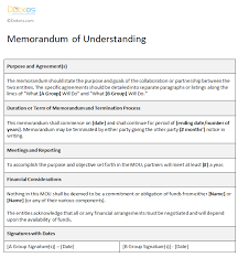Memorandum and letter of intent. Sample memorandum of understanding template.